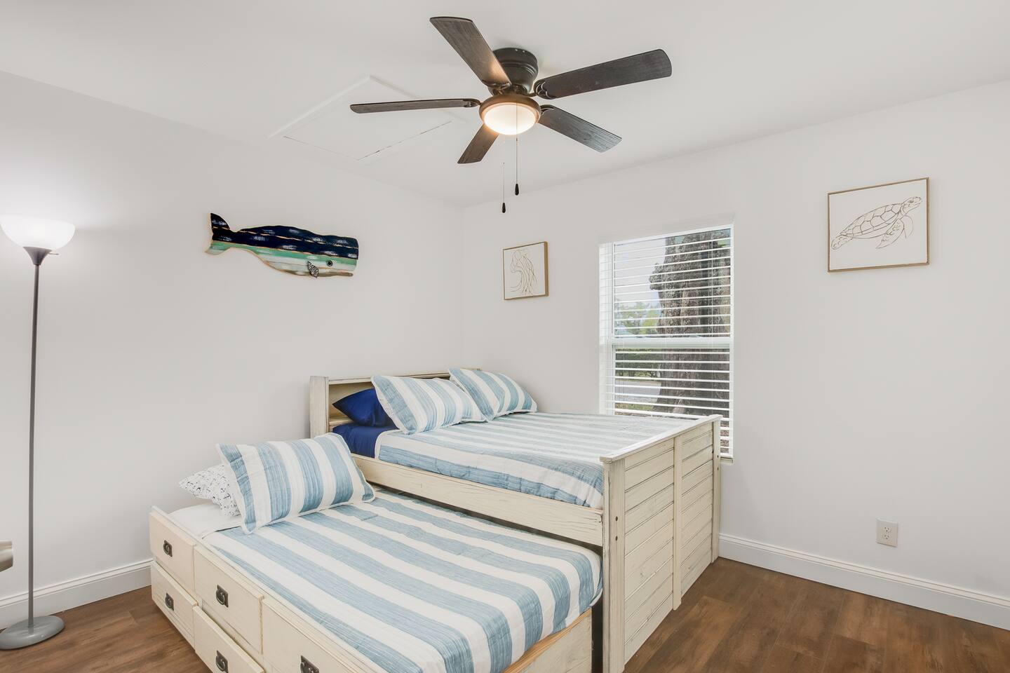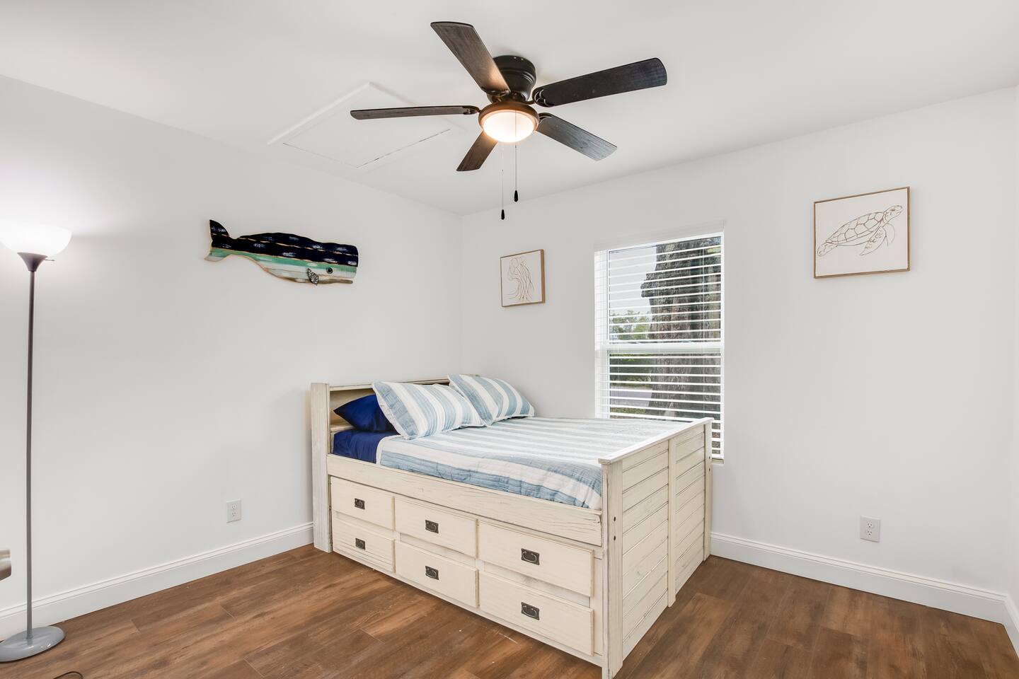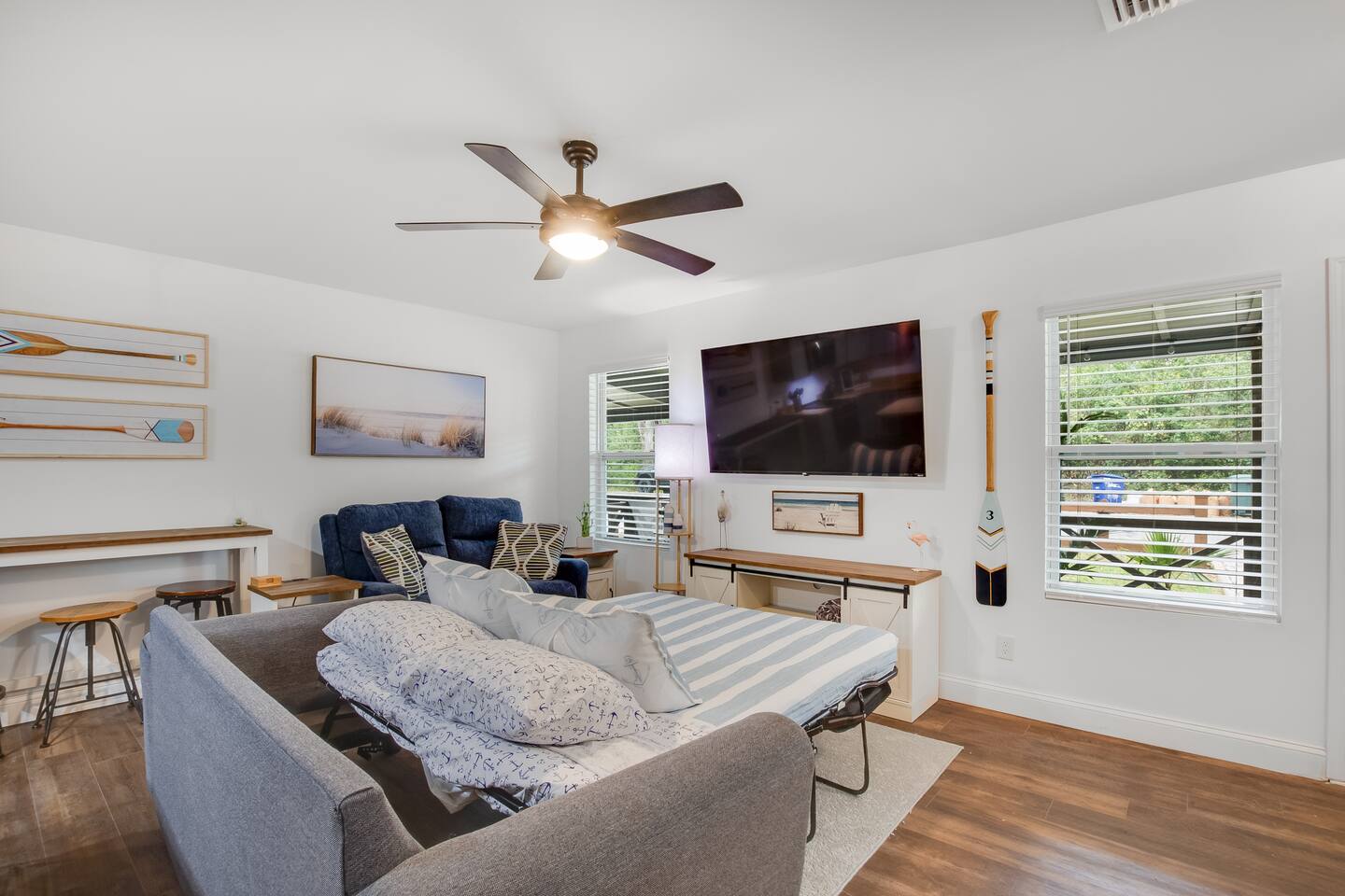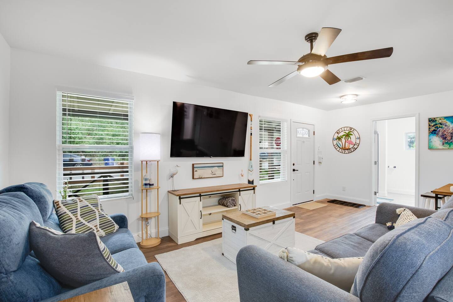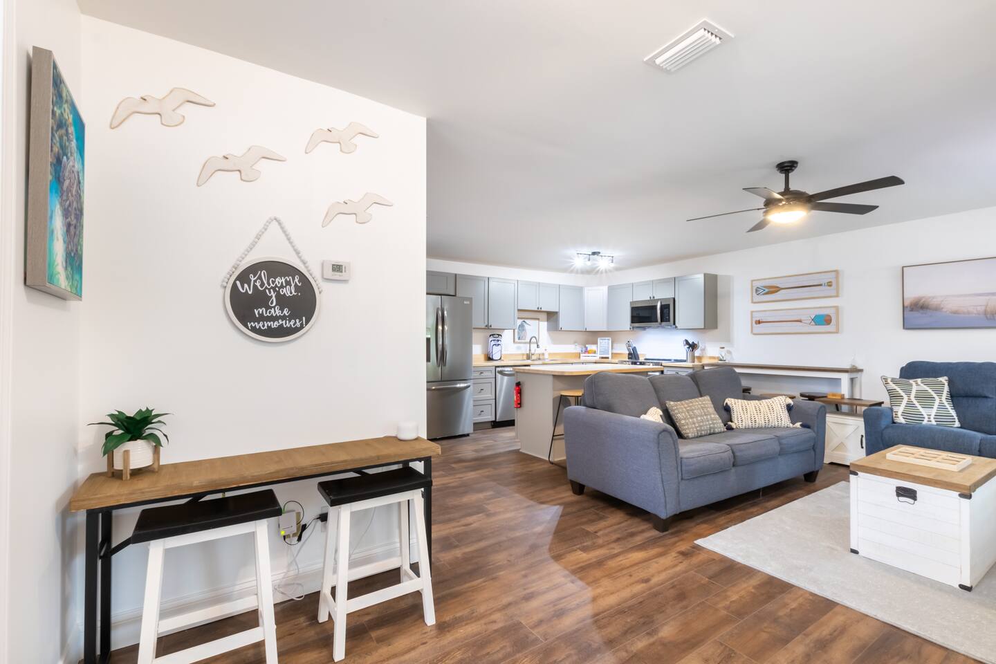 Welcome to one side of our freshly remodeled duplex, designed to accommodate up to 8 guests. With 3 bedrooms featuring a Queen bed, Full bed, Full over twin trundle bed, and a pullout couch in the living room, along with 2 full bathrooms, everyone will have space to unwind comfortably. Located in the heart of downtown Foley, you'll have access to plenty of late-night food delivery options and dining spots. Centrally positioned to various local attractions, here are some distances in miles as times may vary due to seasonal traffic.: South Baldwin Regional Medical Center - 0.5 miles Foley Sports Complex 2.4 miles Gulf Shores - 5 miles Beach/Hangout - 13 miles Owa - 5 miles Alabama Gulf Coast Zoo - 4.7 miles Tanger Outlets - 3.9 miles The Track - 5.8 miles The Wharf - 8 miles. Enjoy the convenience of being right in the midst of all the action! 🐕 🐾 Pet-Friendly with a fee (see rules below) 📍 Centrally Located 🐦 Snowbirds Welcome, walking distance to hospital!