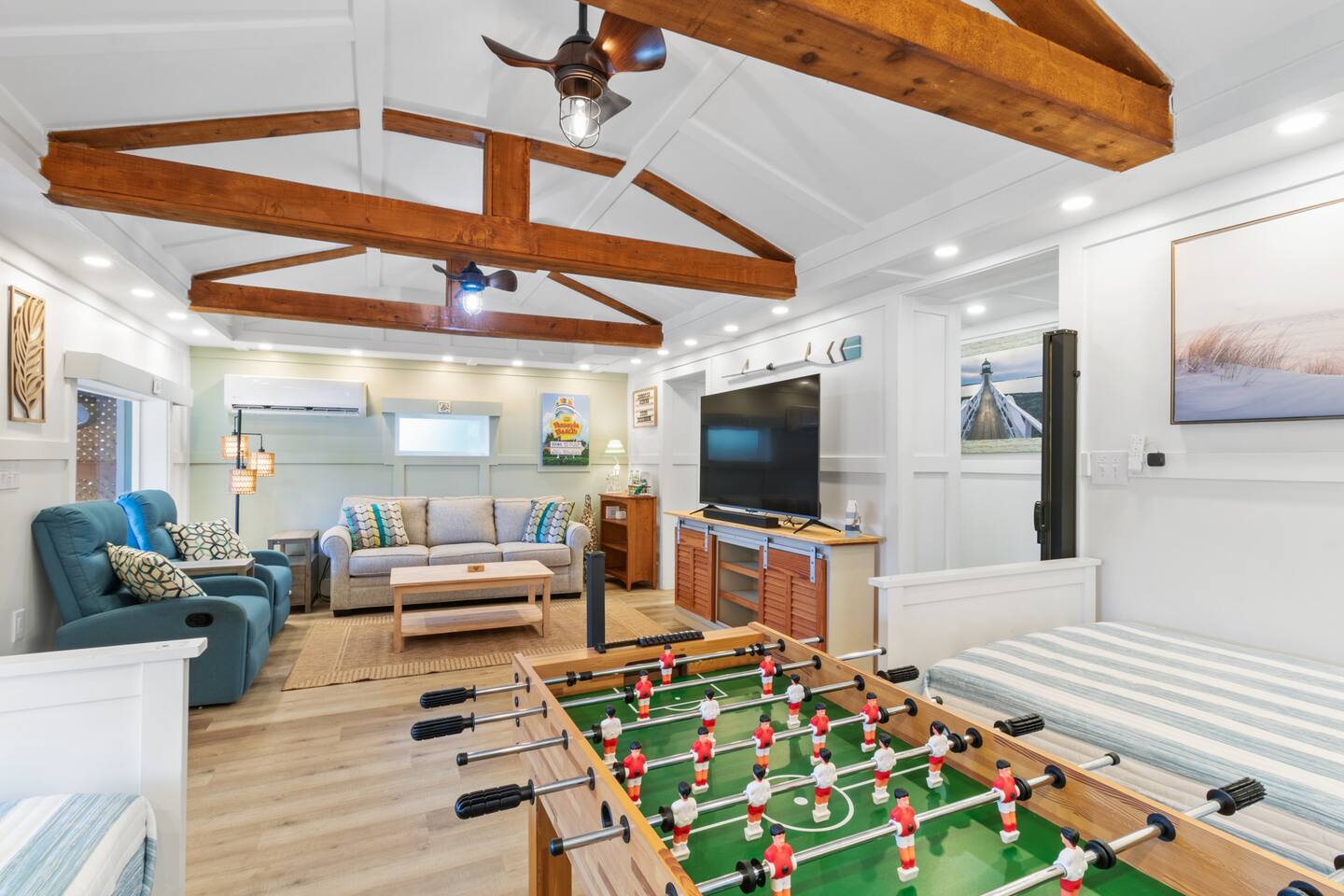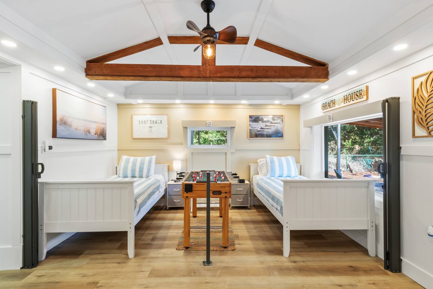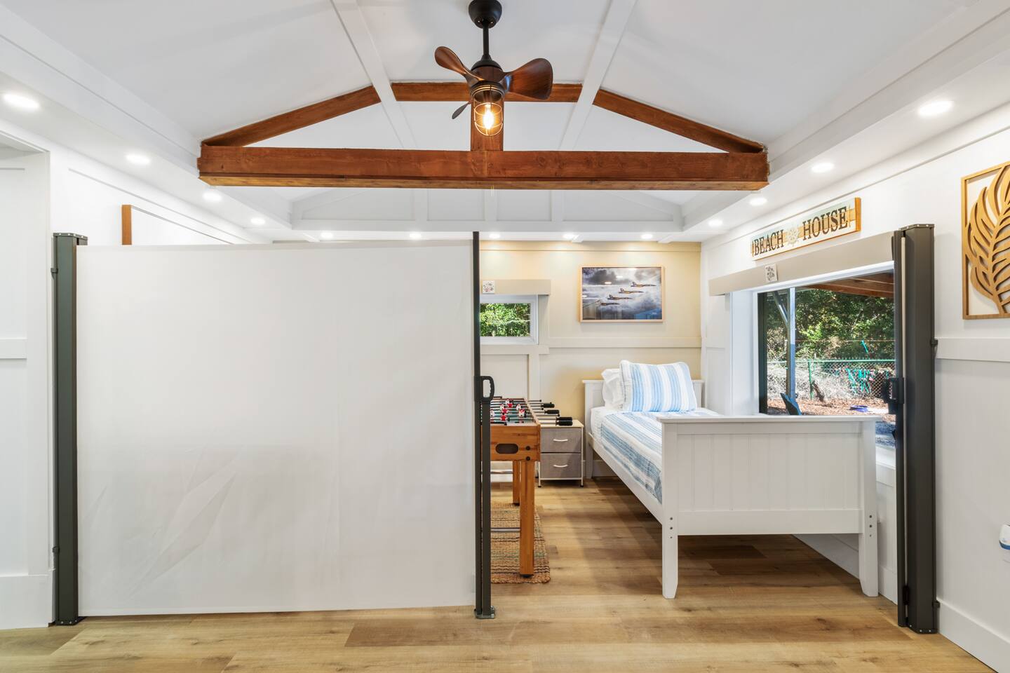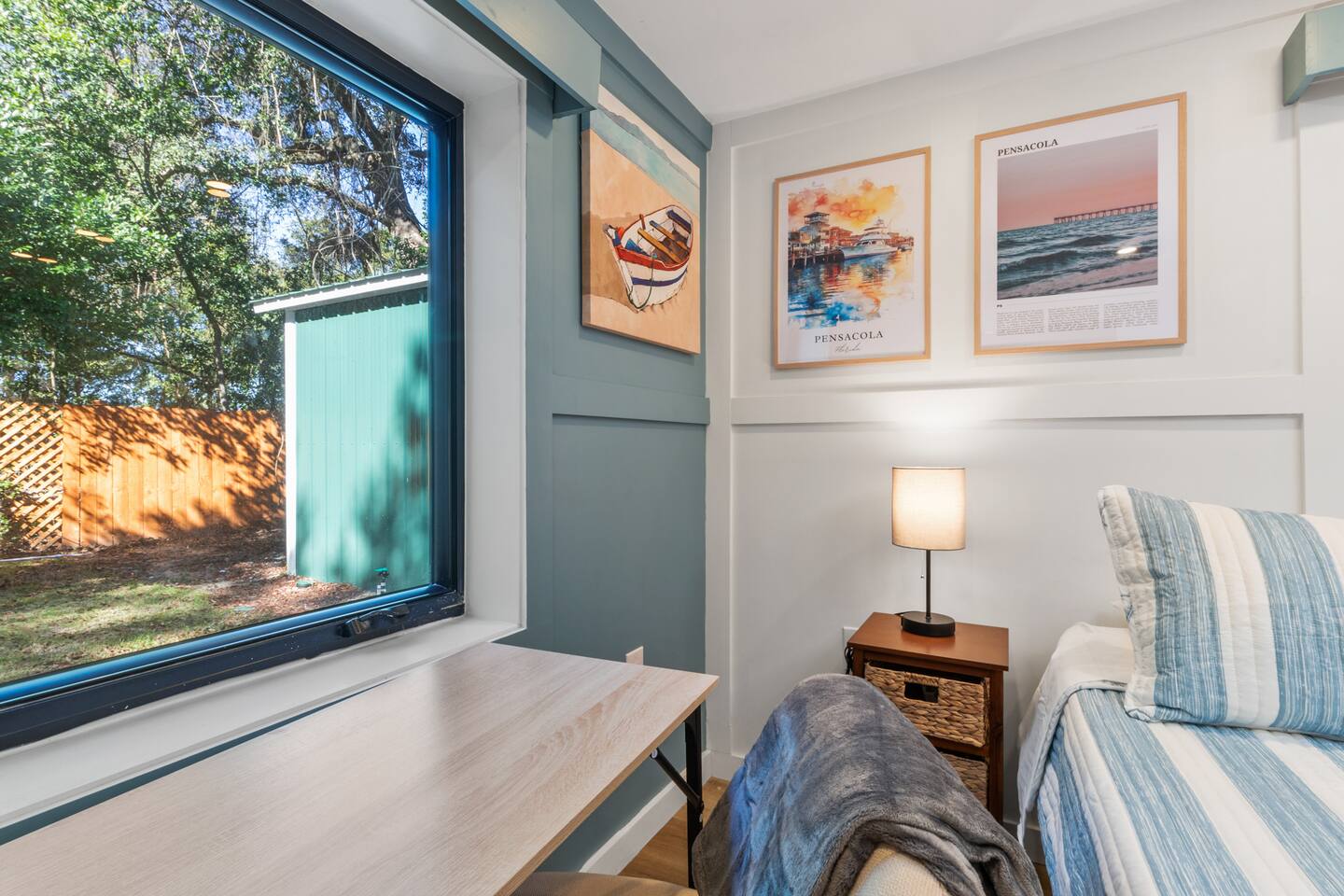 Accommodations: Sleeping Arrangements: -A king-size adjustable bed (head and feet) in the master bedroom. -Two twin beds in the living room with a retractable privacy barrier. -A pullout couch for additional guests. Entertainment: Fast Wi-Fi for streaming and working. A foosball table for friendly competitions. Privacy: No neighbors on three sides, with a privacy fence on the fourth side and a fairly good spacing between the neighbors making for a private experience. Location Highlights: Proximity to Attractions: -Downtown Pensacola: Approximately 3 miles away, offering a variety of dining, shopping, and entertainment options. -Pensacola Beach: About 10 miles away, perfect for a day of sun and surf. -Historic Pensacola Village: Roughly 3.5 miles away, where you can explore the rich history of the area. -Naval Aviation Museum: Approximately 7 miles away, a must-visit for aviation enthusiasts. -McGuire's Irish Pub: Approximately 5 miles away, this renowned establishment offers a lively atmosphere and classic Irish fare. -Pensacola International Airport (PNS): About 4.8 Miles from the property, providing easy access for travelers. -Fort Pickens: close by, this historic fort offers self-guided tours and is part of the Gulf Islands National Seashore. -Historic Pensacola Village: Located approximately 5 miles away, this area features 28 properties reflecting Pensacola's rich history, including museums and guided tours. -Perdido Key: approximately 15 miles A serene beach destination known for its beautiful shoreline, wildlife, and outdoor activities. -Pensacola Lighthouse & Maritime Museum: 8 miles Climb the 177 steps for stunning views of Pensacola Bay and the Gulf of Mexico. Neighborhood: Located across from a park, providing a pleasant view and space for outdoor activities. The area can experience minor foot traffic due to its proximity to the park, and while you may encounter occasional passersby, the cottage offers a very peaceful retreat with its very private setting. and fully fenced yard! (Front and Back) Additional Features: -Amazing Rainfall Style Outdoor shower and toilet for the adventurist folks! -Coffee Bar: With coffee and other supplies. -Outdoor Firepit and Grilling area -Fully equipped kitchen for preparing meals. -Complimentary toiletries for your convenience. -Ample parking available, including a circular driveway with RV/Boat parking. -Fast Wifi -Laundry Facilities: Washer and dryer available for your convenience. -Smart TV: For streaming services like Netflix, Hulu, or Disney+ (if you have a smart TV). (Make sure to bring your own APPS, a lot of apps have made themselves non sharable to guests now) -Self-Check-In: Keyless entry with a smart lock or lockbox for easy check-in. 🐾 Pet-Friendly with a fee (see rules below) Whether you're here for a weekend getaway or an extended stay, Pelican's Nest provides a cozy and convenient home base for your Pensacola adventures.