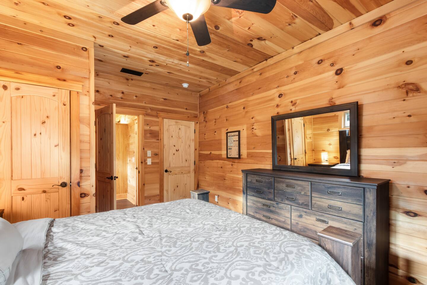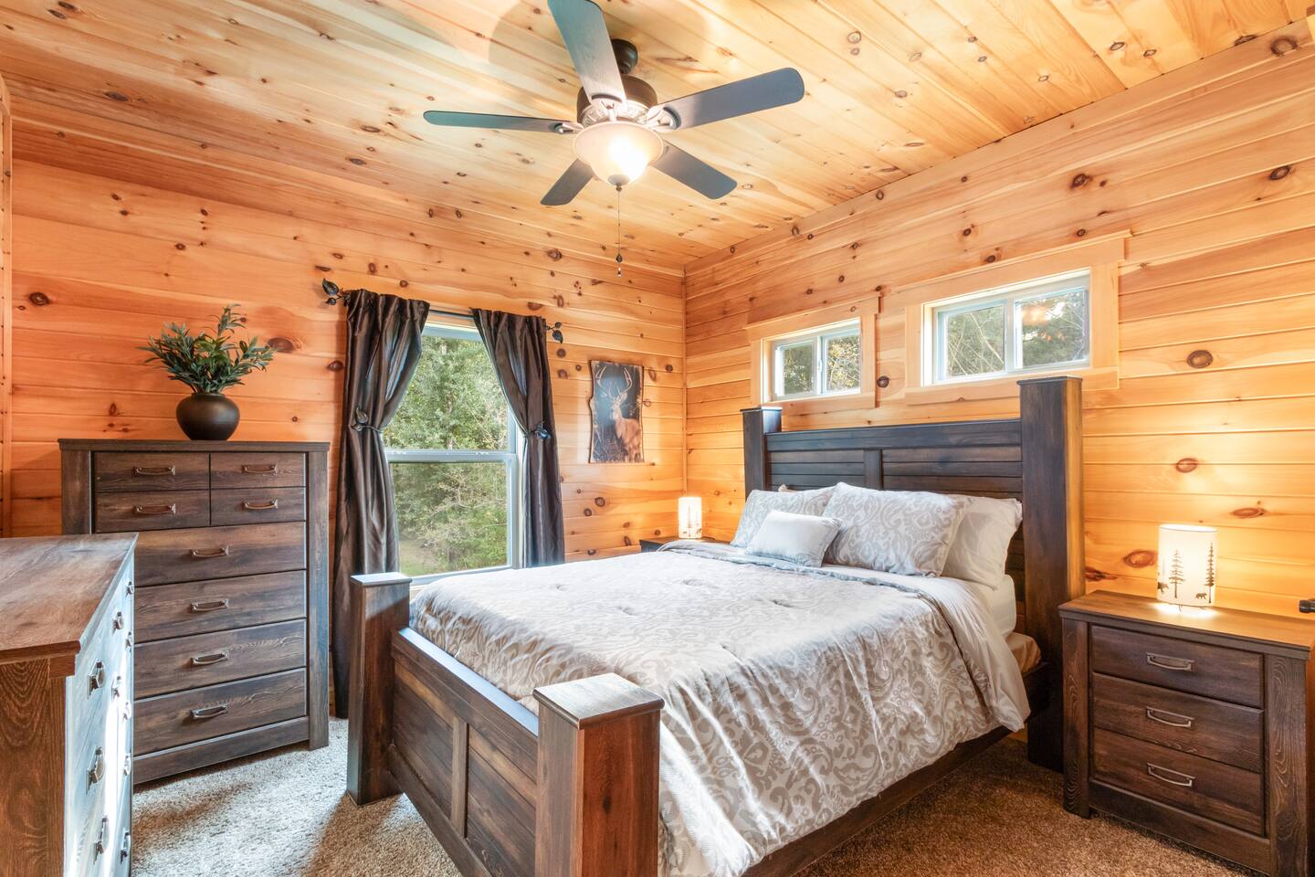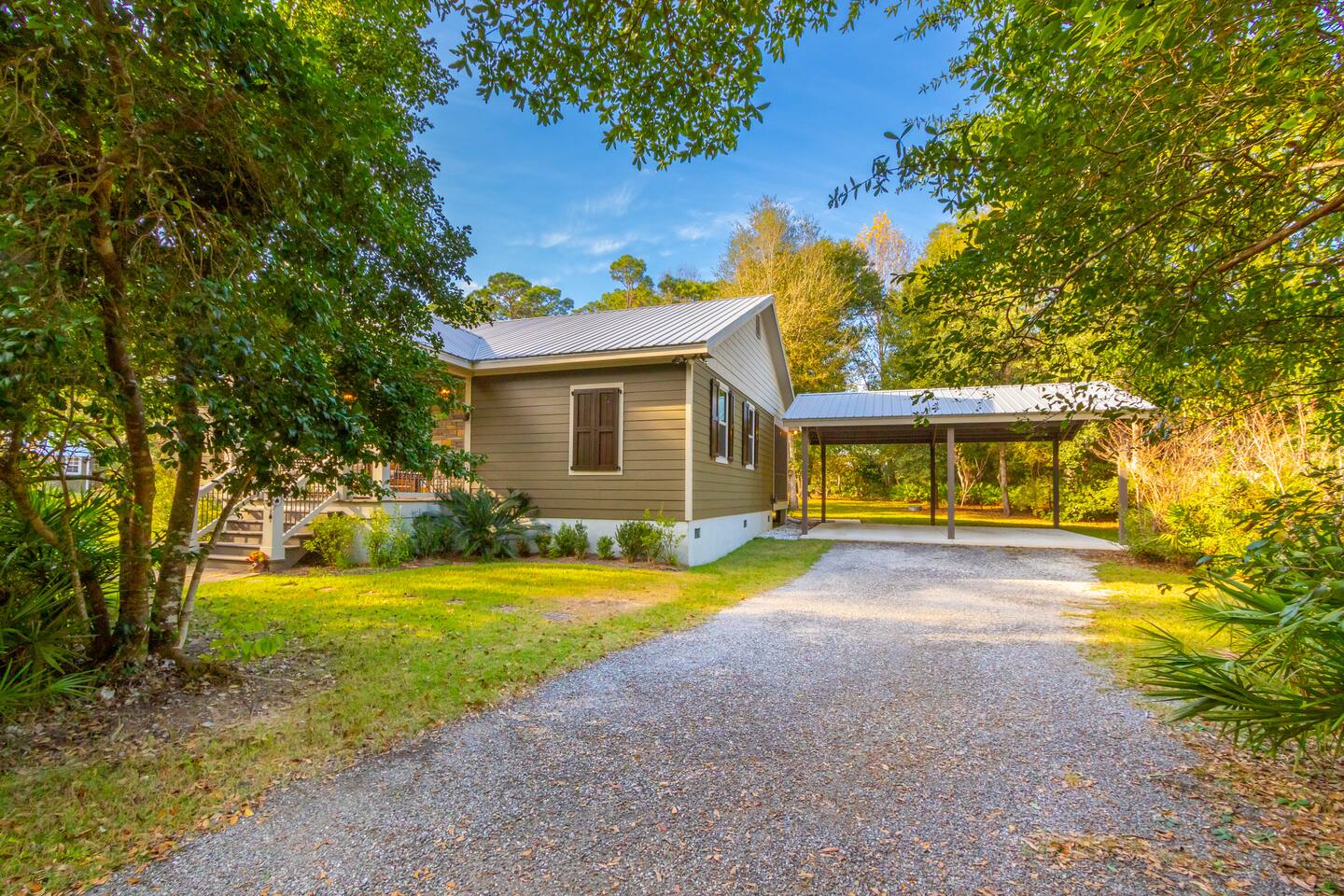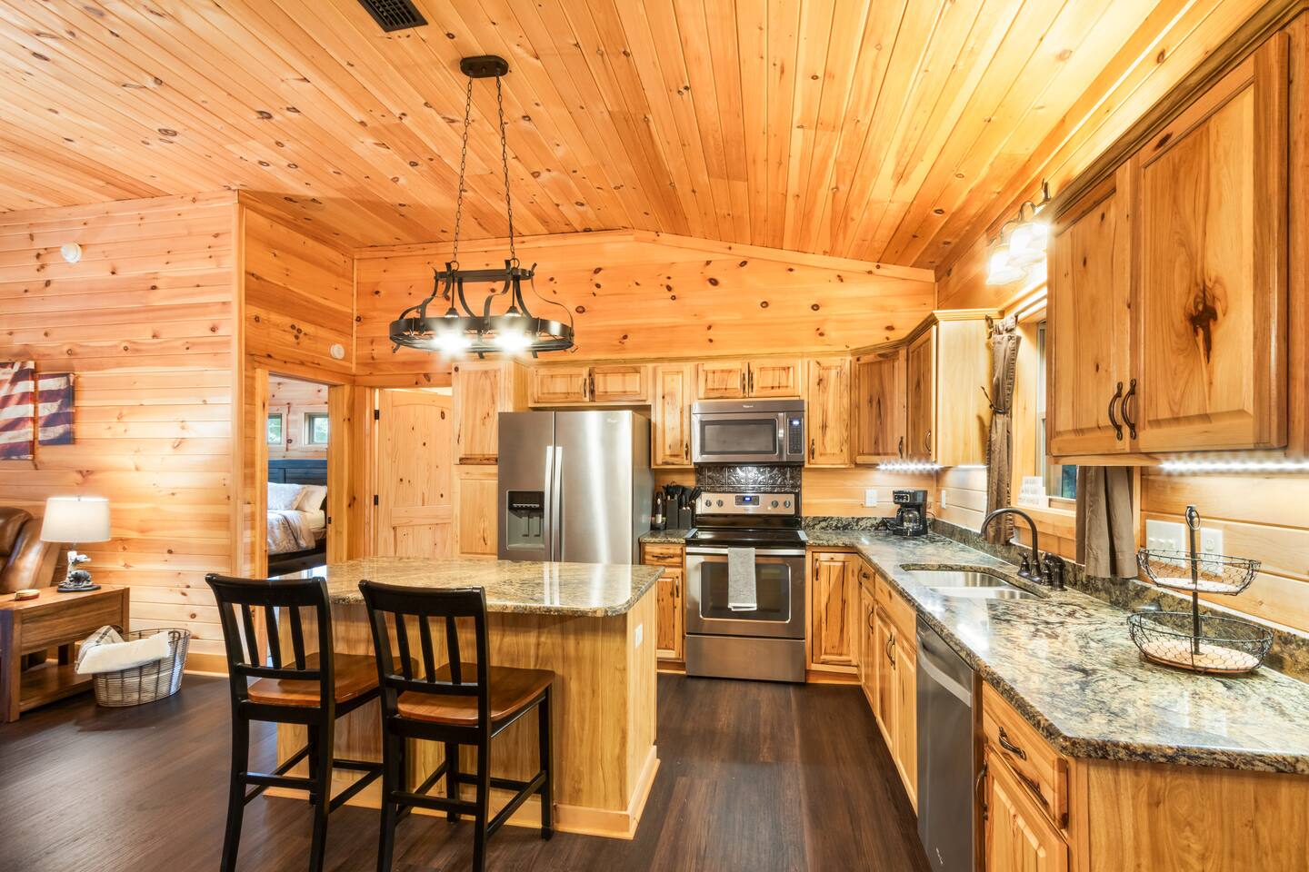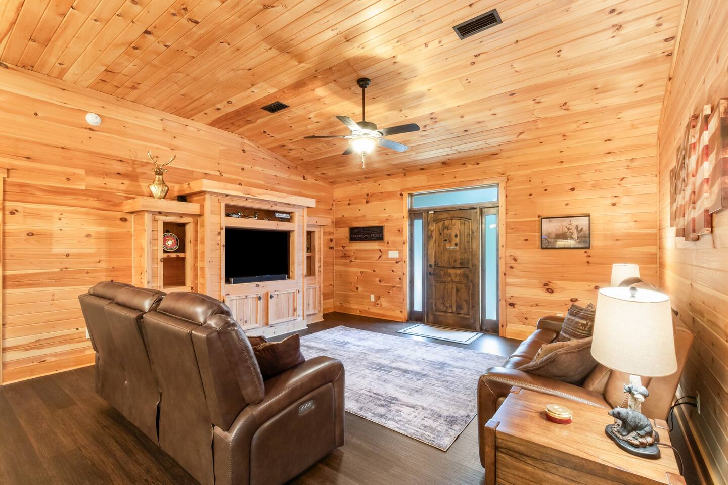 Step into a peaceful cabin-style escape where warmth, comfort, and nature come together. This beautifully crafted 2-bedroom, 2-bath home features rich wood interiors, vaulted ceilings, and a cozy yet refined lodge feel throughout. The spacious kitchen is fully equipped with ample counter space, perfect for cooking and gathering. Outside, unwind in the serene swimming pool complete with a stunning waterfall, surrounded by lush greenery and privacy. Located just minutes from Soldiers Creek and a brand-new public boat launch, this dog-friendly retreat is ideal for boating, relaxing, and slowing down. Whether you’re sipping coffee on the porch, enjoying quiet evenings indoors, or spending days on the water, this home offers a true getaway experience. Sleeping Arrangements (up to 6 guests): The home features a comfortable King bed, a cozy Queen bed, and a high-quality self-inflating air mattress that can be set up in the living room for additional guests. Perfect for families or small groups needing flexible sleeping space. The Pool is not currently heated. Nearby Attractions: Gulf Shores: 17 mi Orange Beach: 10 mi OWA Amusement Park: 14 mi Alabama Gulf Coast Zoo: 15 mi The Track: 16 mi The Wharf: 13 mi 🐾 Pet Friendly with fee (see rules below) 🐾 Snowbirds Welcome!