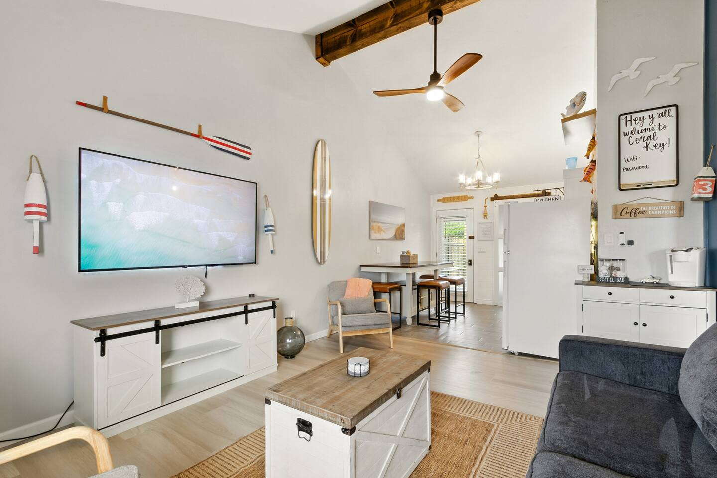 Welcome to The Coral Key β Unit A, a light-filled retreat thoughtfully designed for beach lovers, families, and pet owners alike. ποΈ 2 Bedrooms: Relax in cozy, coastal-inspired bedrooms featuring plush beds and smart TVs for all your favorite streaming apps. π 1 Full Bathroom: Newly renovated with clean, modern finishes and stocked for your stay. ποΈ Open Living Area: Bright, welcoming, and styled with modern beachy vibes. Enjoy the smart TV and comfy seating after a day outdoors. π½οΈ Fully Stocked Kitchen: Cook with ease using nice appliances, a coffee maker, and all the cookware you need. π΄ Private Fenced Yard: Enjoy your own peaceful outdoor space complete with a charcoal grill, outdoor seating, and room for your pup to roam. πΎ Dog-Friendly: We love your four-legged family members! The backyard is ideal for dogs, and we provide a few extras to make them feel at home. Unit A is part of a duplex but has its own private entrance, fenced yard, and dedicated parking, giving you the privacy and comfort of a standalone home.